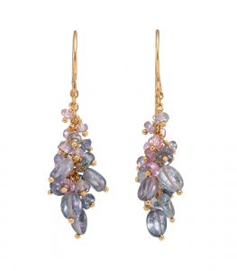 Gemstone cluster earrings with semi-precious spinel gemstones. Smooth ovals and faceted rondelles combine in a flattering cluster shape.