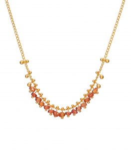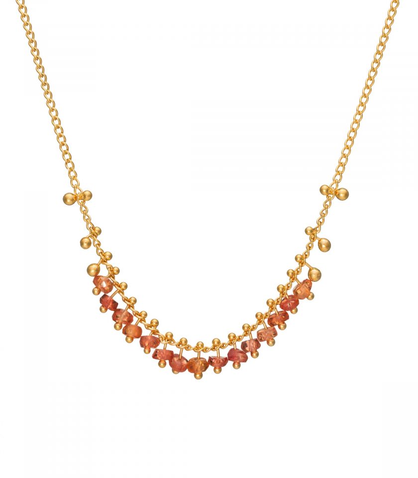 A delicate orange sapphire necklace, with pretty ball detailing, on a fine gold vermeil curb chain.