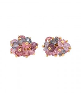 A combination of pink, lilac and blue spinel beads form a cute pompom shape in these cluster stud earrings.