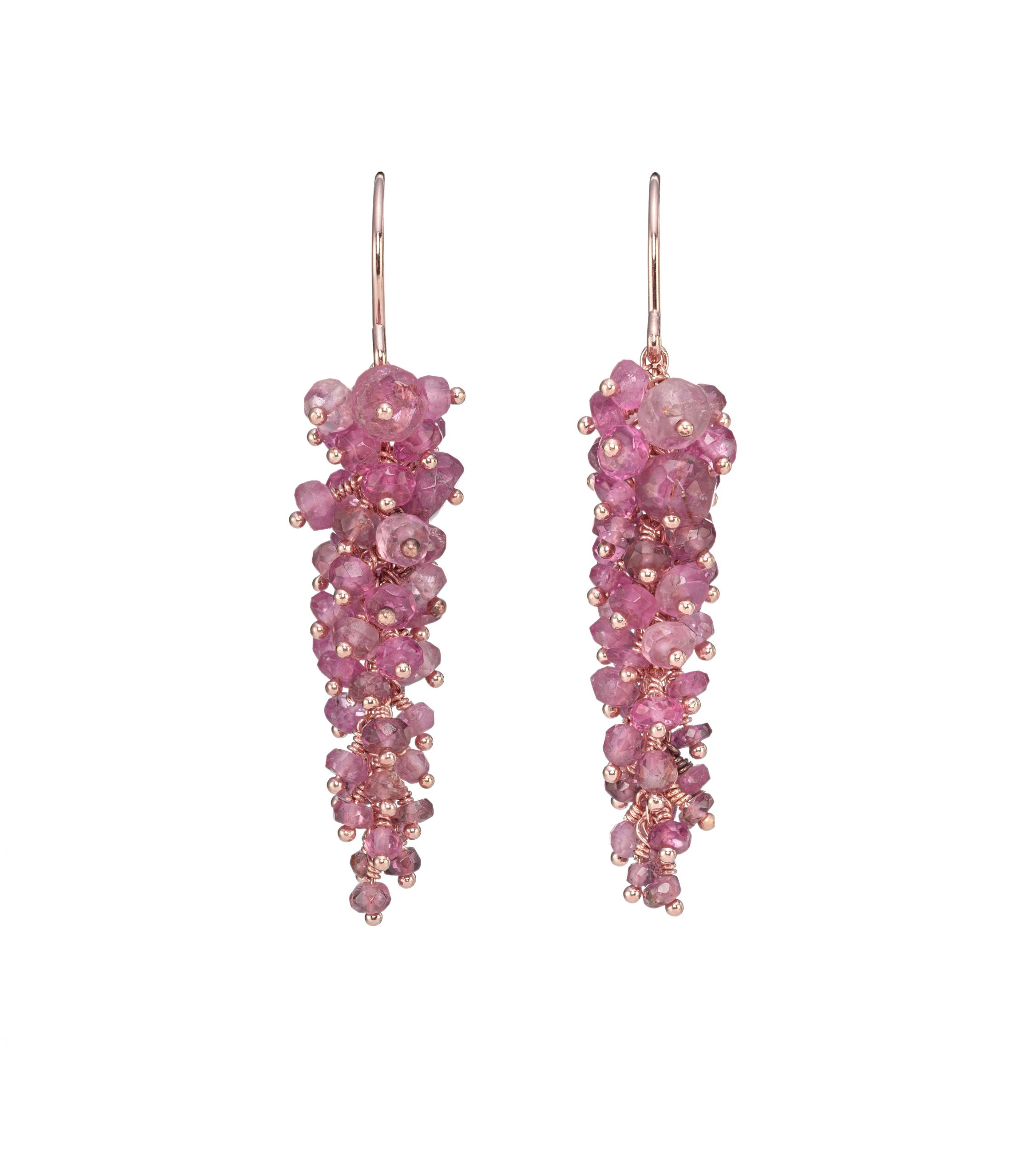 Pink tourmaline drop earrings. A beautifully tapered cluster of faceted pink tourmaline beads with a graceful shape inspired by wisteria blossom. The natural stones show a range of beautiful colours from soft rose to deep pink. Pictured in rose gold vermeil, these elegant earrings are also available in yellow gold vermeil.